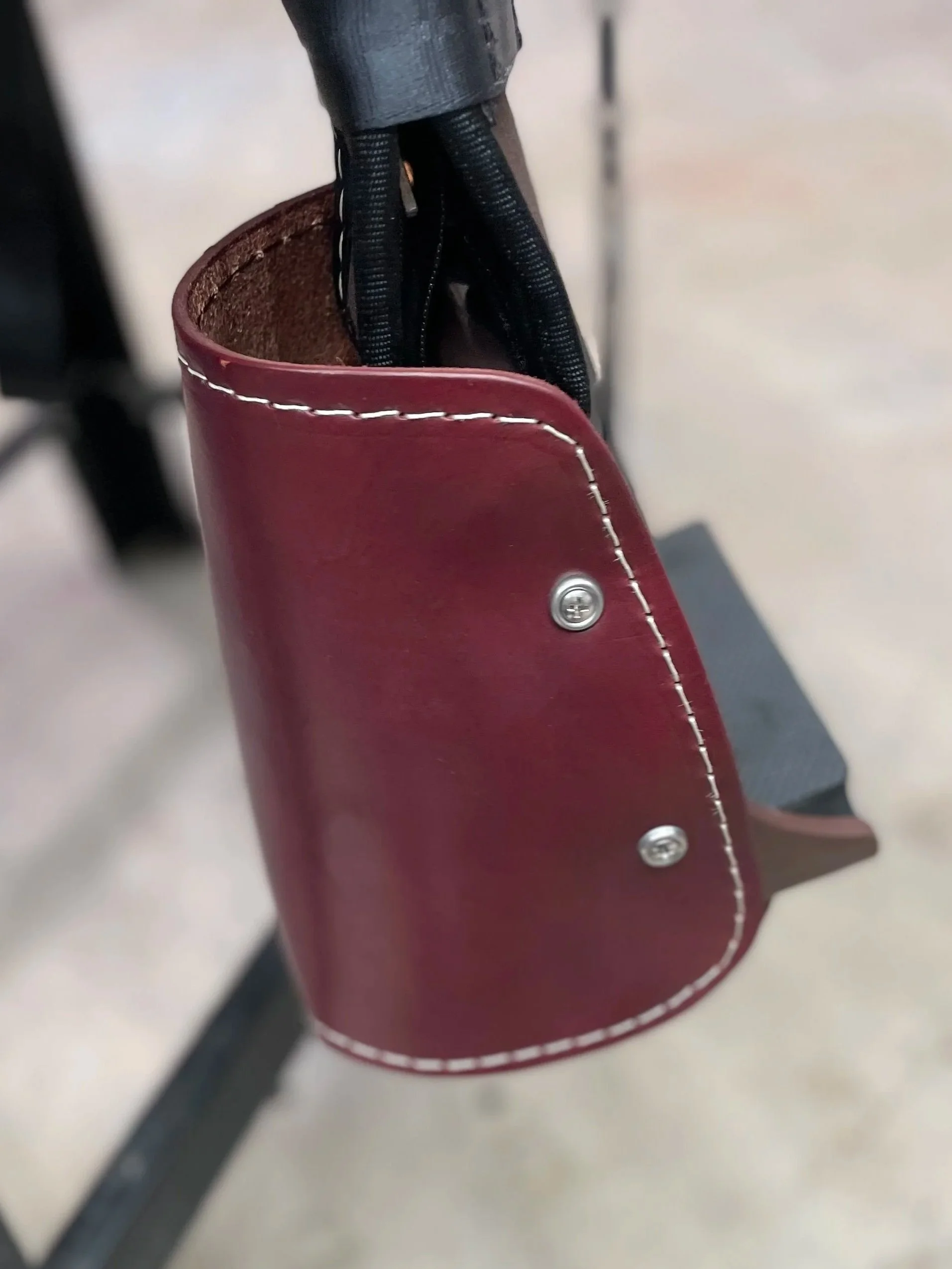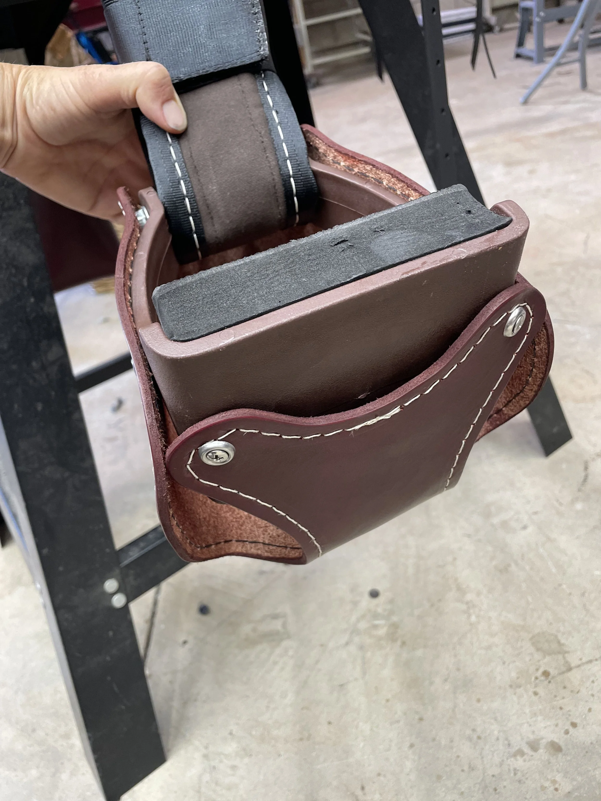 Sheri has limited hip mobility and already has a hard time swinging her leg over her horse. We modified the cantle to provide a lower profile. The original high cantle provides an ultra-secure fit, but this cantle and the grippy nature of the fabric still do a fantastic job of holding Sheri tight in the saddle.